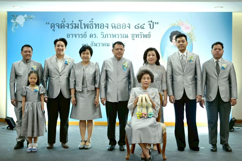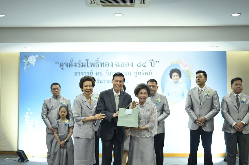 เมื่อวันที่ ๑๓ ธันวาคม พ.ศ. ๒๕๖๘ มหาวิทยาลัยราชพฤกษ์และสถาบันในเครือตั้งตรงจิตร จัดงาน ”ดุจดั่งร่มโพธิ์ทองฉลองอายุครบ ๘๔ ปี” แด่อาจารย์ ดร.วิภาพรรณ ชูทรัพย์ ประธานคณะกรรมการบริหารสถาบันในเครือตั้งตรงจิตรและผู้รับใบอนุญาตมหาวิทยาลัยราชพฤกษ์ ในโอกาสฉลองอายุวัฒนมงคลครบ ๘๔ ปีครั้งนี้ ได้รับเกียรติจากศาสตราจารย์ไชยยศ เหมะรัชตะ ราชบัณฑิตและนายกสภามหาวิทยาลัยราชพฤกษ์ ดร.พันธ์เพิ่มศักดิ์ อารุณี ผู้ช่วยปลัดกระทรวงการอุดมศึกษา วิทยาศาสตร์ วิจัยและนวัตกรรม ดร.วัลลภ สุวรรณดี อดีตนายกสมาคมสถาบันอุดมศึกษาเอกชนแห่งประเทศไทยฯ และอธิการบดี มหาวิทยาลัยเกษมบัณฑิต ในนามสถาบันอุดมศึกษาเอกชนแห่งประเทศไทย ในพระราชูปถัมภ์ สมเด็จพระเทพรัตนราชสุดาฯ สยามบรมราชกุมารี อาจารย์วิเชียร เนียมน้อม นายกสมาคมวิทยาลัยเทคโนโลยีและอาชีวศึกษาเอกชน แห่งประเทศไทย ในพระราชูปถัมภ์ สมเด็จพระเทพรัตนราชสุดาฯ สยามบรมราชกุมารี ให้เกียรติขึ้นกล่าวอวยพร