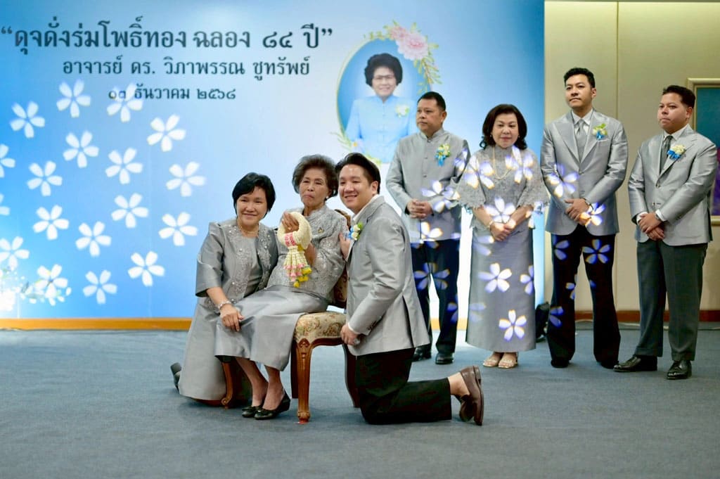 พร้อมทั้งได้รับเกียรติจากผู้บริหารสถาบันการศึกษาต่าง ๆ เพื่อน ๆ ญาติมิตร ผู้ใต้บังคับบัญชา ศิษย์เก่าและศิษย์ปัจจุบัน มาร่วมอวยพรและร่วมงานเลี้ยงฉลอง ณ มหาวิทยาลัยราชพฤกษ์